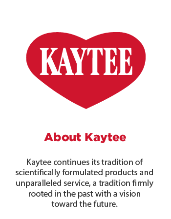 Relying on your veterinarian’s expert advice is important to the health and well-being of your pet. As a Veterinarian Recommended brand, Kaytee’s commitment to rabbits, guinea pigs, chinchillas and pet birds has inspired nutritional innovations for over 150 years. Our expertise and state-of-the-art processing mean quality is built into every diet, ensuring the health of each pet and bringing peace-of-mind to pet parents.